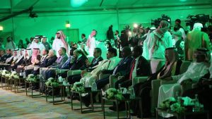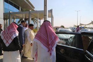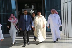 وكان في استقباله لدى وصوله مطار الملك خالد الدولي بالرياض وفد من وزارة الإعلام والثقافة بالسعودية و وسعادة القائم بالأعمال في السفارة الليبية السيد خيري العالم والسكرتير الأول للسفارة السيد عصام الرقيبي، وتوجه بعدها الوفد إلى مقر الإقامة للمشاركة في الاحتفالية