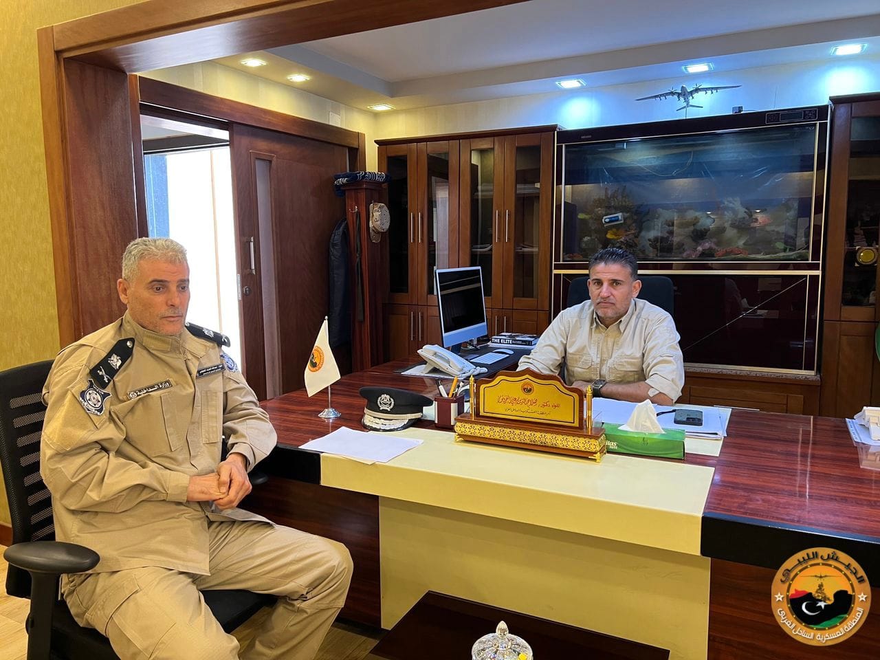 عقد آمر المنطقة العسكرية الساحل الغربي لواء ” صلاح الدين النمروش ” صباح اليوم الاحد بمكتبه إجتماعا مع مدير مديرية أمن صرمان اللواء ” عبد الله العارف المحجوبي “.
