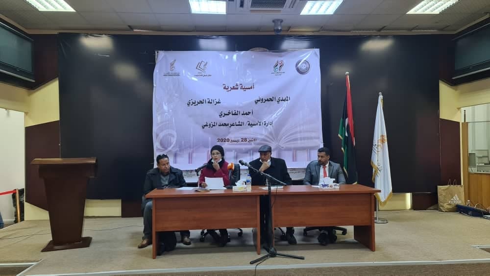 أقيمت مساء يوم الاثنين الثامن والعشرين من شهر ديسمبر الجاري  الأمسية الشعرية بقاعة عمر المختار بمعرض طرابلس الدولي  ضمن فعاليات الملتقى الوطني الثالث للإبداع الذي تقيمه وتشرف عليه الهيئة العامة للثقافة والتي قدمها الشاعر عمر عبد الدائم وشارك بها ثلاث شعراء  الشاعر /المهدي الحمروني والشاعرة/غزالة الخريزي والشاعر /أحمد علي الفاخري، وحضر الأمسية العديد من الشعراء والكتّاب والمهتمين ومتذوقي الشعر.