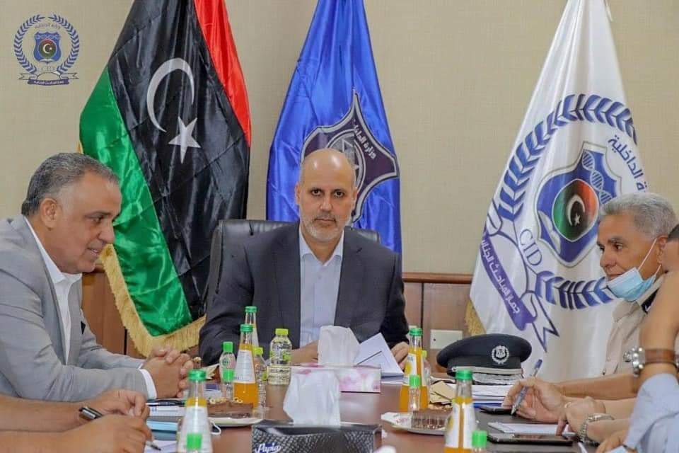عقدت اللجنة المشكلة بناءً على تعليمات وزير الداخلية عمـــــيد خالد مـــازن لدراسة المشاكل التي تواجه عملية تفعيل عمل المعبر الحدودي غدامس , اجتماعاً موسعاً صباح اليوم الخميس 17 يونيو 2021 م ، بمكتب رئيس جهاز المباحث الجنائية عـميـــد محمـــــود عاشـــــور وبحضـــــور عـميـــد المبروك عبــــدالحفيــــظ رئيس جهــــاز مكافحة الهجرة غير الشرعية وعـميـــد صلاح الدين الحريزي مدير الإدارة العامة لأمن المنافد وعقيـــد إبراهيم الزطريني مـــدير الإدارة العـــــامة لمكافحة المخدرات وعقيــد أبوبكر الهــــاشمي مــــدير إدارة الدوريات الصحــــراوية بجهاز الهجـــــــرة غير الشرعية و عقيـــد محمد قليـوان مدير أمـــن غدامس.