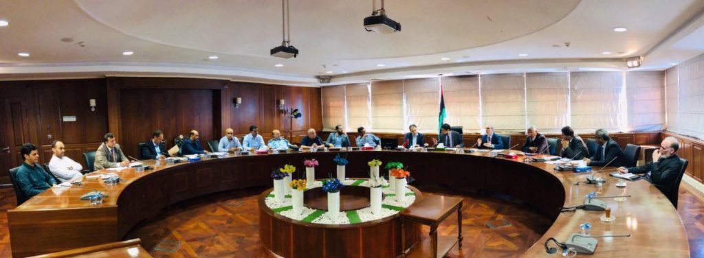 عقد السيد وزير المالية المفوض بحكومة الوفاق الوطني اجتماعاً مع السيد / رئيس مجلس ادارة المؤسسة الوطنية للنفط ، وضم الاجتماع عدد من مدراء الإدارات الفنية بكل من وزارة المالية والمؤسسة الوطنية للنفط . ووفقا للمكتب الاعلامي لوزارة المالية فقد تم خلال الاجتماع بحث الأثار المتوقعة لتذبذب أسعار النفط وأثارها على الإنفاق العام ، كما تم بحث سبل دعم المؤسسة ومعالجة الالتزامات المالية المتراكمة عليها والتأكيد على استمرار التواصل للوقوف على المعالجات .