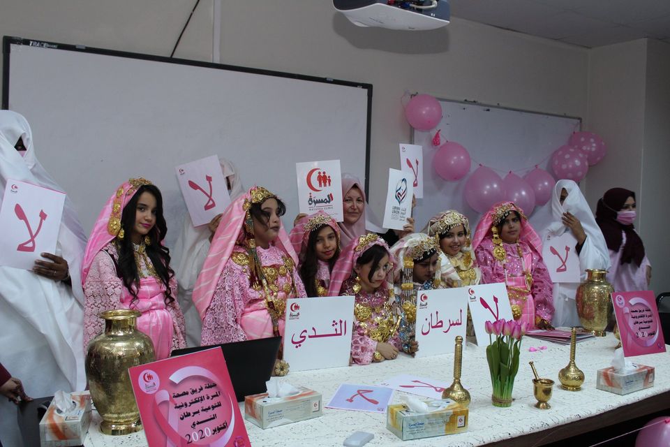اختتم مساء السبت الماضي بمصحة المسرة في طرابلس حملة التوعية  بسرطان الثدي للعام الحالي 2020 تحت شعار ” لا لسرطان الثدي ” وسط احتفالية رائعة بحضور زهرات مصحة المسرة بالزي الليبي التقليدي تميز باللون الوردي  بحضور استشارية علاج أمراض النساء والولادة الدكتورة” سعاد الورشفاني” رئيس فريق مصحة المسرة للتوعية  التي أشادت  في كلمتها أمام  الحضور بالجهود التي بذلها فريق للتوعية الصحية للمرأة وأهمية الكشف المبكر لسرطان الثدي للحد من انتشاره والتوعية من مخاطره.