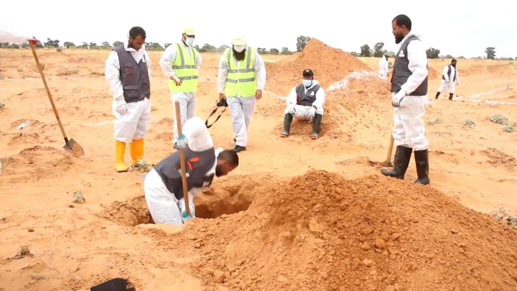 وقالت الهيئة في بيان، «مع استمرار أعمال البحث والاستكشاف بمدينة ترهونة تحديدًا (مشروع الربط)، تمكنت فرق الهيئة من اكتشاف 5 مقابر جماعية جديدة»، مؤكدة «العمل على 3 منها حتى الآن».