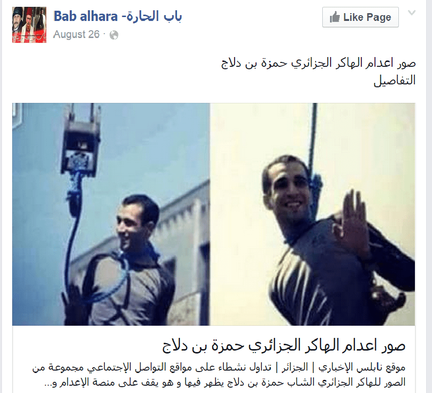 تناقلت العديد من مواقع الالكترونية والصفحات الفيسبوكية خبر صدور قرار بالاعدام في الولايات المتحدة على الهاكر الجزائري حمزة بن دلاج، حتى أن بعضها نشر صورا” لاعدامه وحبل المشنقة عليه.