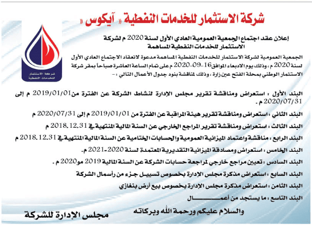 إعلان عن عقد اجتماع الجمعية العمومية لشركة البنية للاستثمار والخدمات