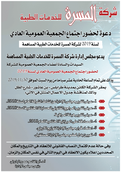 اعلان: شركة المسرة للخدمات الطبية