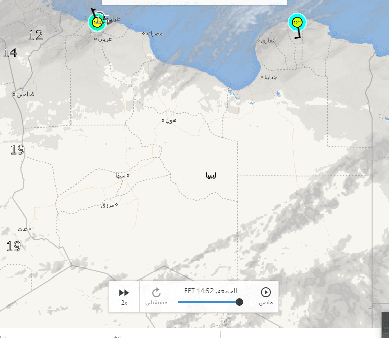 ملخص عام : تقلبات جوية متوقعه من مساء اليوم على مناطق شمال ليبيا مصحوبة برياح نشطة مع سقوط أمطار تكون غزيرة على بعض المناطق مصحوبة بزوابع رعدية وحبات البرد واحتمال تساقط الثلوج علي مرتفعات الجبل الغربي مع انخفاض في درجات الحرارة .