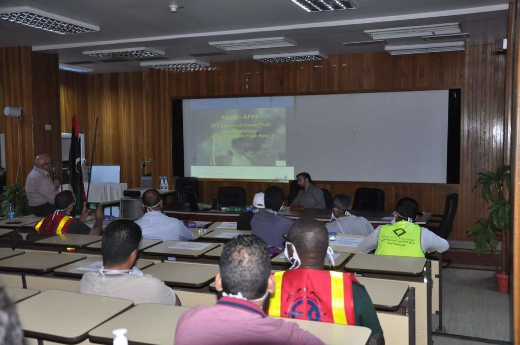 نظم قسم الأمن والسلامة التابع لإدارة الشؤون الهندسية بالمستشفى الجامعي طرابلس صباح اليوم الثلاثاء بالتعاون مع شركة المحبة للأمن والسلامة ندوة حول التقنيات الحديثة المستخدمة في تطبيق إجراءات الأمن والسلامة المهنية بالمستشفيات.