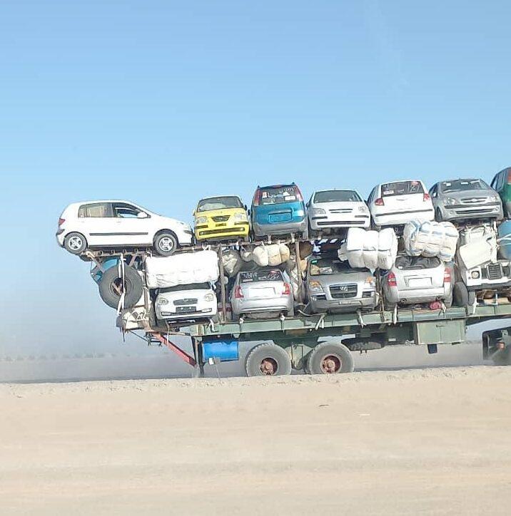 تعبر مدن الواحات ( جالو – اوجلة – اجخرة ) عشرات الشاحنات التي تنقل الاف السيارات القادمة من أوروبا الى السواحل الليبية وتصديرها مباشرة الى أسواق وسط افريقيا حسب مصادر محلية لمراسل وكالة الانباء الليبية .