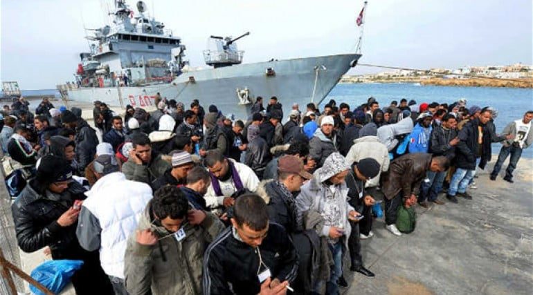 المهاجرون ينتمون إلى جنسيات افريقية ومن بنغلاديش حيث قدمت للمهاجرين المساعدات الإنسانية والطبية وتم إنزالهم إلى مركز إيواء سوق الخميس .