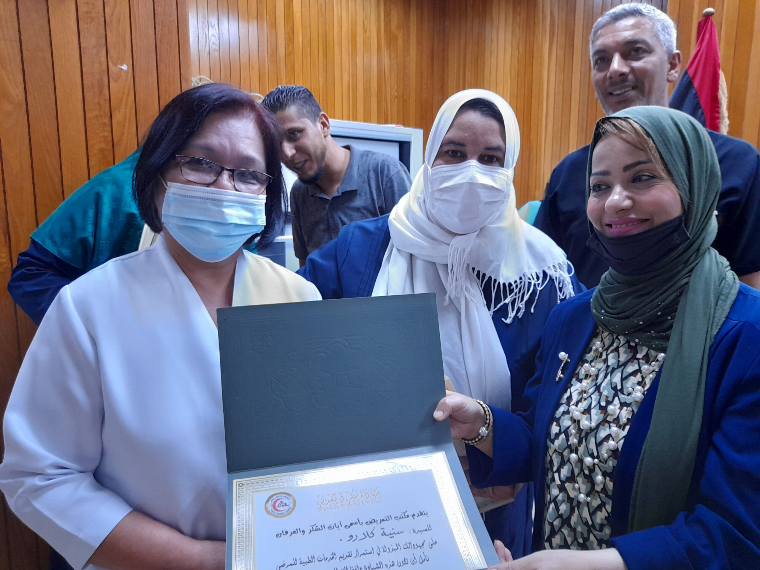 وأشاد ” العجيلي”، بالجهود التي تبذلها خدمة للمرضى واكد بانهم تقاسموا مع الشعب الليبي كل الأزمات التي عاشتها ليبيا طيلة السنوات الماضية ولم يغادروا إلى بلدانهم رغم تعثر إجراءات الحصول على مستحقاتهم المالية بسبب حبهم لهذه المهنة الانسانية وحبهم لليبيا شعبها الكريم.