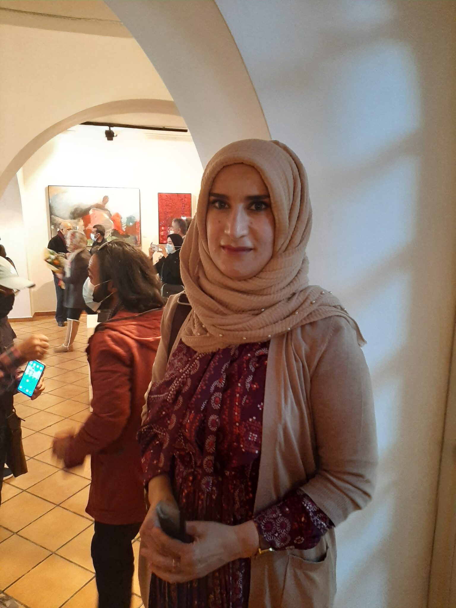 - الفنانة مريم بازينة عضو مؤسس ومشاركة بالمعرض تناولت خلال حديثها معنا مسيرة عدد من الفنانين