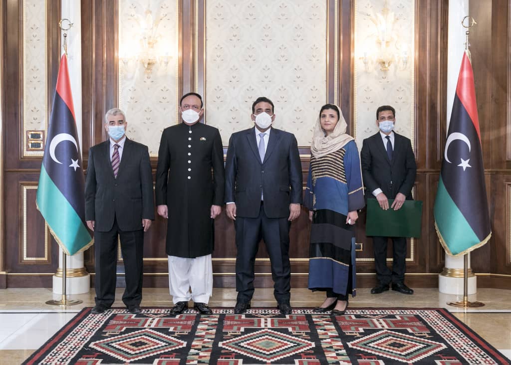 أعرب سفير جمهورية باكستان الإسلامية الجديد لدى ليبيا ” رشاد جويد ” عن استعداد بلاده للمشاركة في توحيد المؤسسات الليبية، وتدريب القوات العسكرية، والمساعدة في إرساء المسار الديمقراطي والوصول إلى الاستحقاقات الانتخابية .