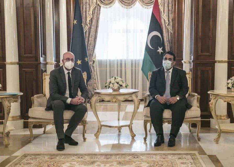 التقى السيد رئيس المجلس الرئاسي محمد المنفي، ظهر اليوم رئيس المجلس الأوروبي “شارل ميشيل” بقصر ولي العهد في العاصمة طرابلس.