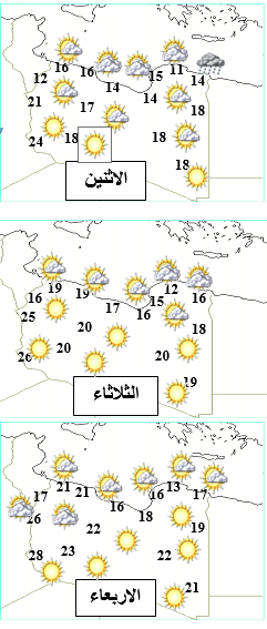 الأحوال الجوية المتوقعة على ليبيا خلال الثلاثة الايام القادمة بداية من الاثنين 18- 02 – 2019 م