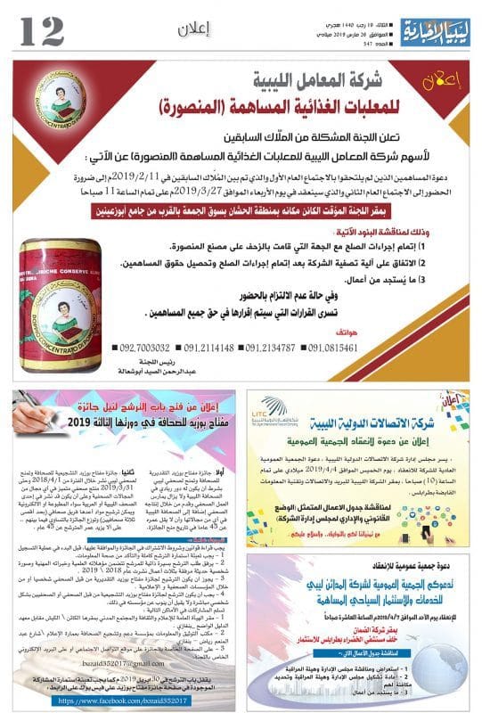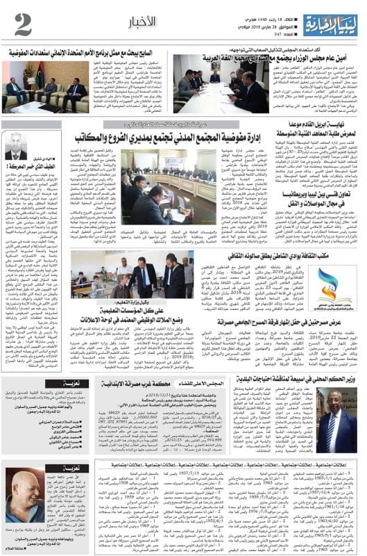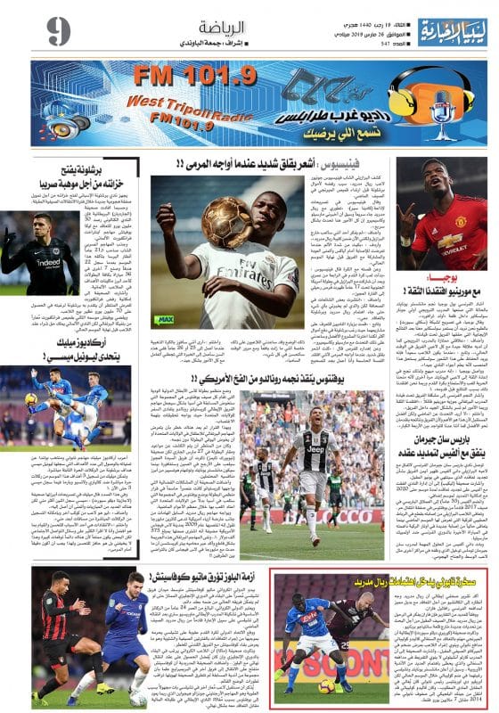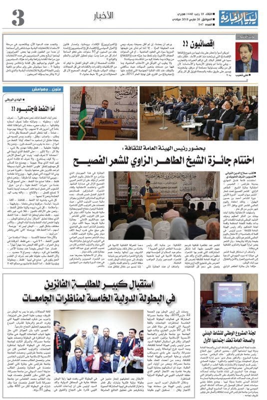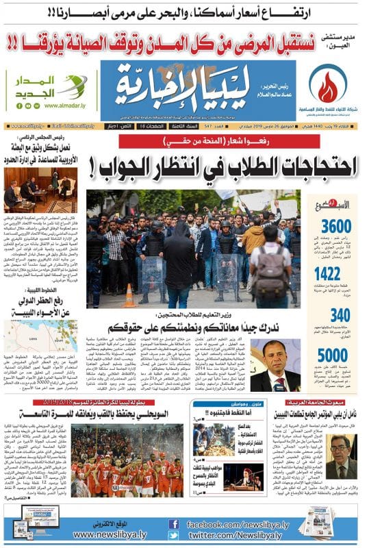 صدر صباح اليوم الثلاثاء 19 رجب 1440 هجري ، الموافق 26 مارس 2019 ميلادي العدد 547 صحيفة ليبيا الاخبارية وللاطلاع على العدد بالكامل يمكنكم الضغط على هذا الرابط