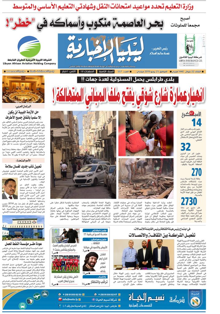 يصدر الثلاثاء الموافق 25 يونيو 2019 العدد 557 لصحيفة ليبيا الاخبارية ، العدد حافل بالاخبار والمتابعات واللقاءات والتحقيقات معززاً بأراء أبرز الكتاب والصحفيين
