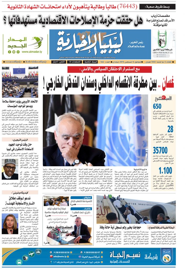 يصدر صباح الثلاثاء 6 اغسطس 2019 العدد 562 لصحيفة ليبيا الاخبارية