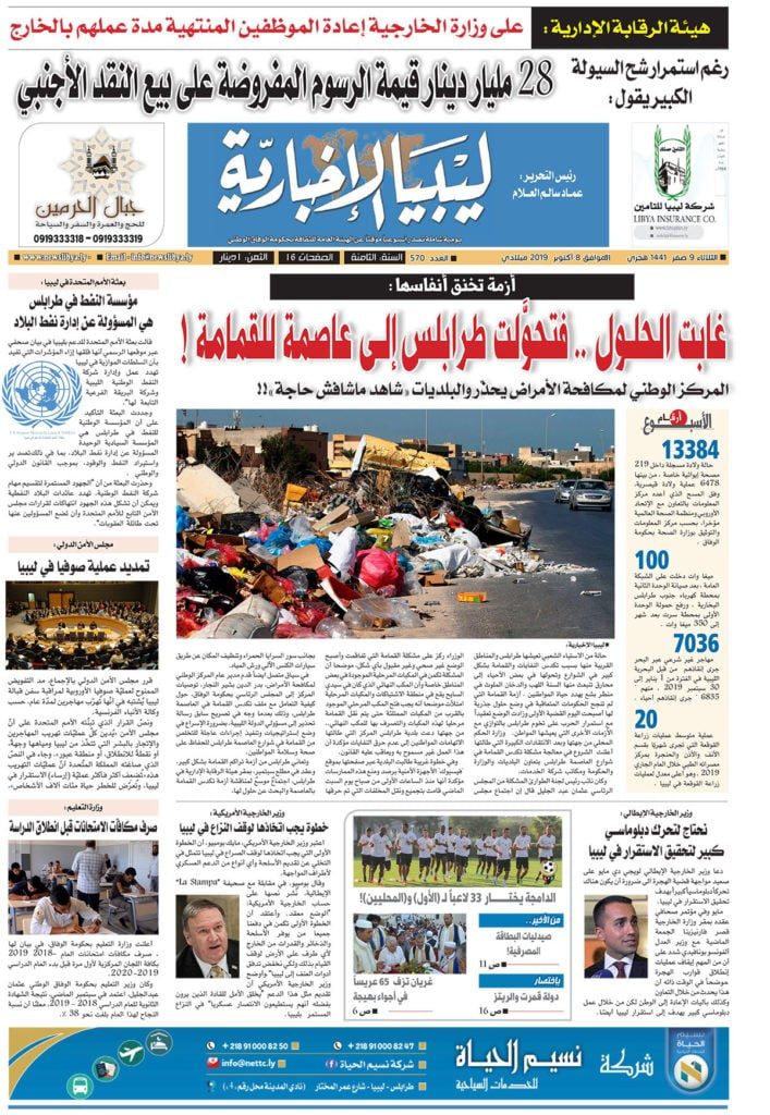 يصدر صباح الثلاثاء 8 اكتوبر 2019 العدد (570) لصحيفة #ليبيا #الإخبارية