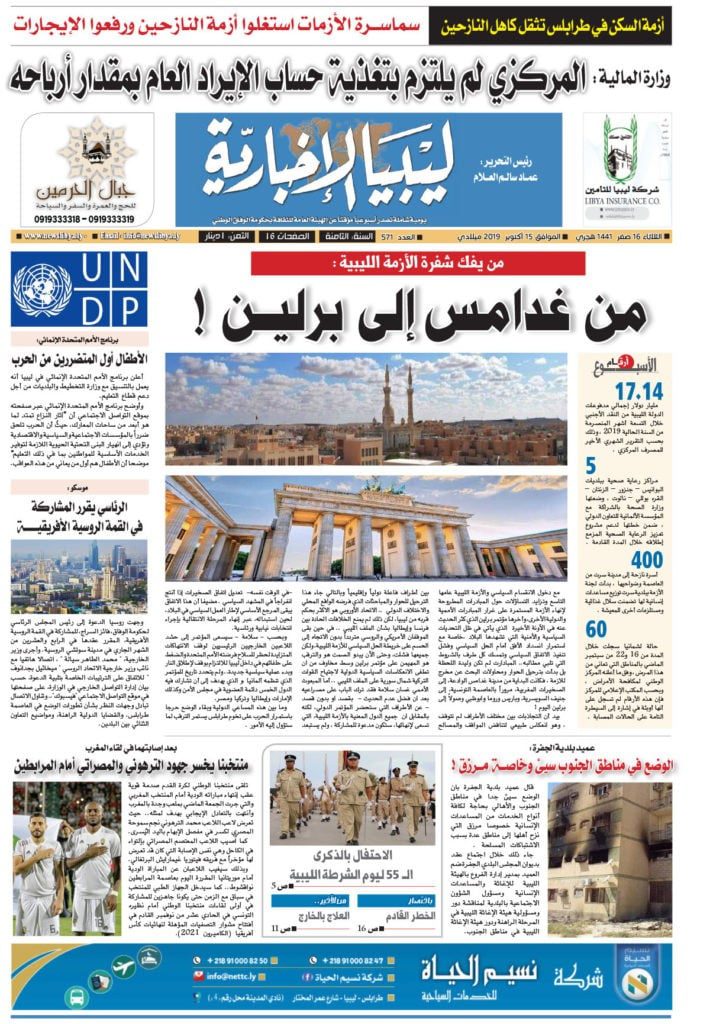 يصدر صباح الثلاثاء 15 اكتوبر 2019 العدد (571) لصحيفة #ليبيا #الإخبارية