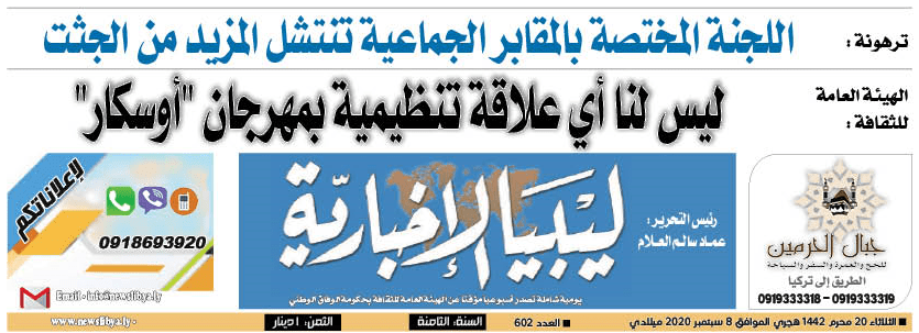 عن الهيئة العامة للثقافة صدر صباح اليوم الثلاثاء 8 سبتمبر 2020 العدد (602) من صحيفة ليبيا الإخبارية