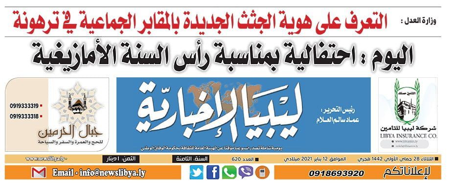 عن الهيئة العامة للثقافة يصدر صباح غدٍ الثلاثاء 12 يناير 2021م العدد (620) من صحيفة ليبيا الإخبارية