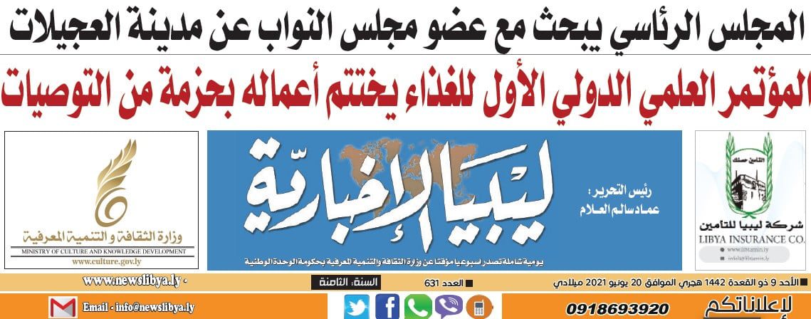 عن وزارة الثقافة والتنمية المعرفية يصدر صباح الاحد 20 يونيو 2021م العدد (631) من صحيفة ليبيا الإخبارية …