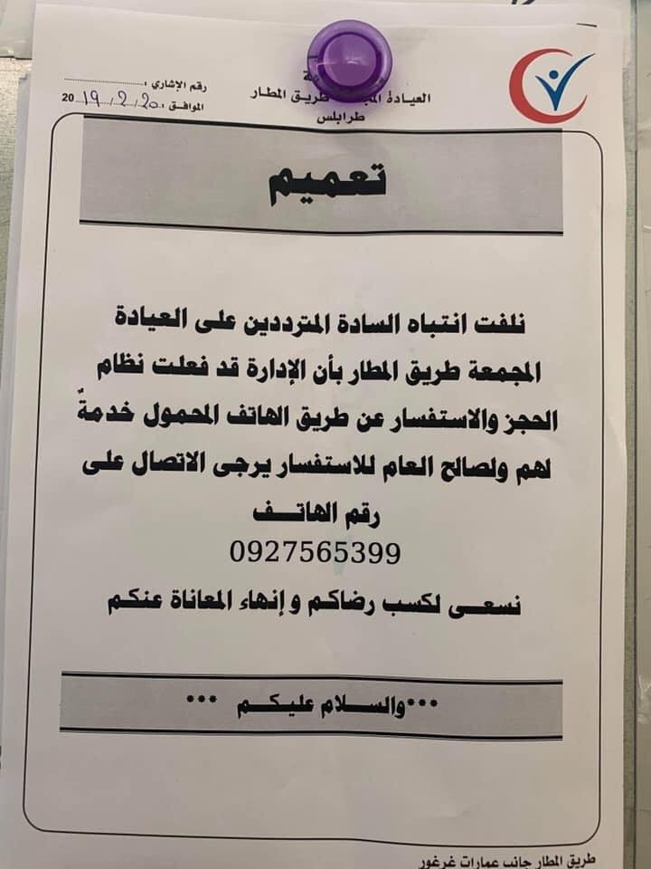 العيادة المجمعة طريق المطار تشرع في مواعيد الحجز عبر الهاتف