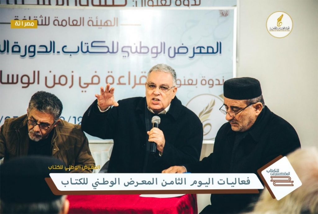 ضمن الأنشطة الثقافية للمعرض الوطني للكتاب في دورته الثانية عُقدت مساء الثلاثاء 31 ديسمبر2019 ندوة تحت عنوان ” القراءة في زمن الوسائط المتعددة”، وذلك في قاعة الندوات بالمعرض، شارك في الندوة الأستاذ يوسف عبد الرحمن أبوراوي، والدكتور الطاهر بن طاهر، والأستاذ إبراهيم صفار، وأدار الندوة الدكتور محمد ملودة،