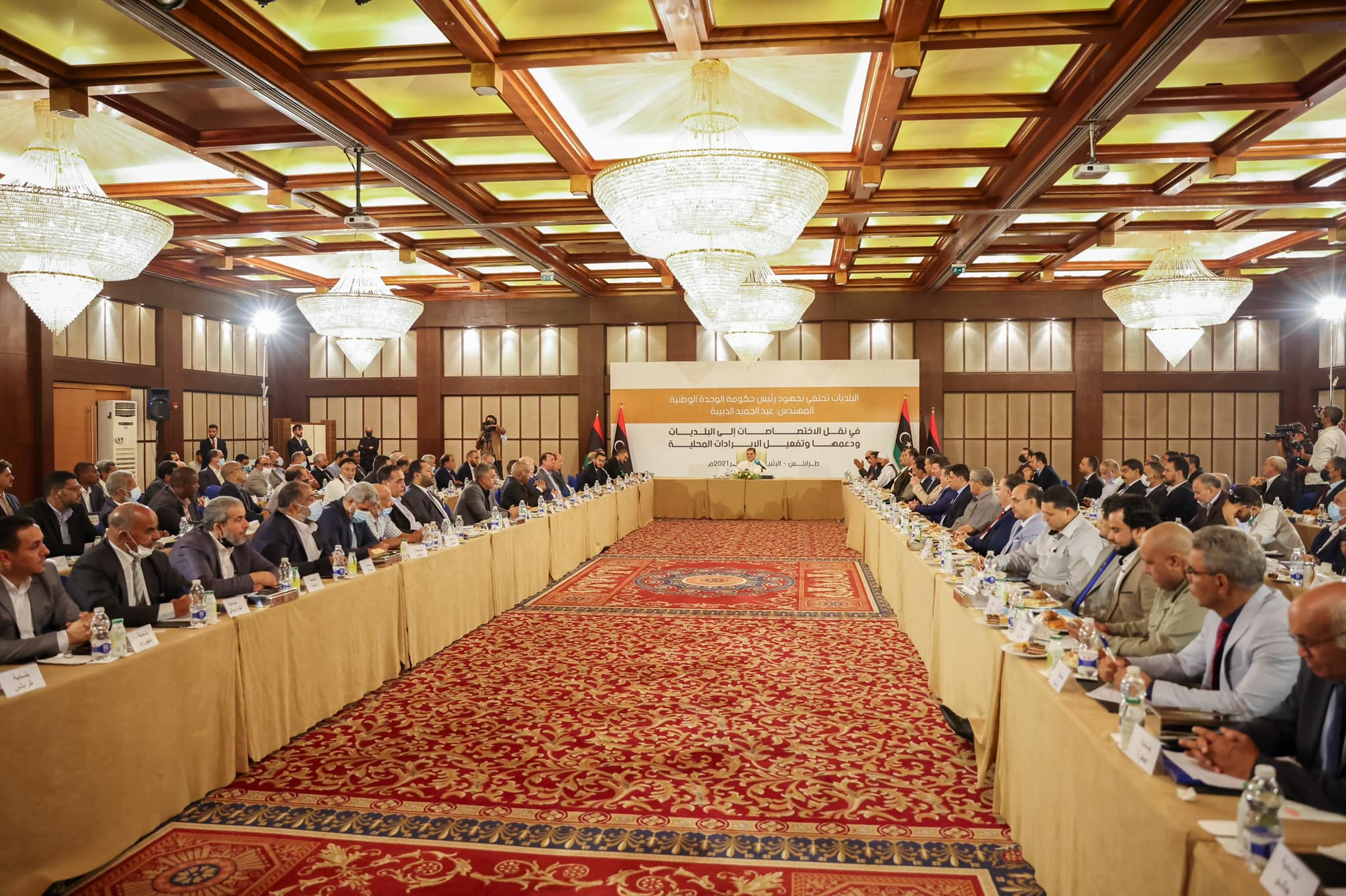 شارك رئيس حكومة الوحدة الوطنية السيد عبدالحميد الدبيبة مساء اليوم الإثنين، بإحتفالية أقيمت للإحتفاء بجهوده في نقل الاختصاصات للبلديات، وكذلك تفعيل لائحة الإيرادات المحلية عبر قرار مجلس وزراء حكومة الوحدة الوطنية رقم 330، الصادر في 23 من اغسطس 2021.
