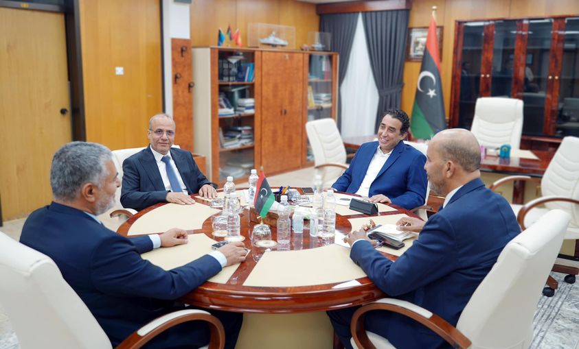 التقى رئيس المجلس الرئاسي محمد المنفي، ونائبي المجلس السيدان عبد الله اللافي وموسى الكوني، اليوم الثلاثاء، رئيس المجلس الأعلى للدولة السيد محمد تكالة.