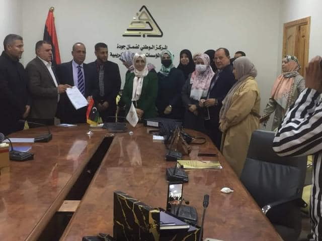 استقبل الدكتور عبدالله عبدالجليل، المدير العام للمركز الوطني لضمان الجودة، بحضور الأستاذ محمد الشاطر مدير إدارة الموارد والخدمات المساندة بالمركز، والدكتور محمد العزومي، والدكتور مصطفى أبورقيبة خبيري الجودة بإدارة الاعتماد، يوم الأثنين 09/01/2023، السيد مراقب التربية والتعليم ببلدية سوق الجمعة الأستاذ رشاد بشر صحبة الأستاذ صلاح المشرقي مدير مدرسة الساحل وفريق الجودة بالمدرسة، والأستاذ محمد بديري مدير مدرسة خليفة الحجاجي وفريق الجودة بالمدرسة، وذلك لتسليم ملفات مدارسهم لطلب الاعتماد من قبل المركز، وقد حضر مراسم التسليم الأستاذة سميرة والي مدير مكتب التخطيط الاستراتيجي بالمراقبة، والأستاذة هويدا الشبشوبي رئيس قسم الجودة بالمراقبة، والأستاذة ربيعة المخزوم رئيس فريق الإحسان للاستشارات التربوية والتعليمية والتدريبية وهي الجهة التي قامت بتأهيل المدرستين.