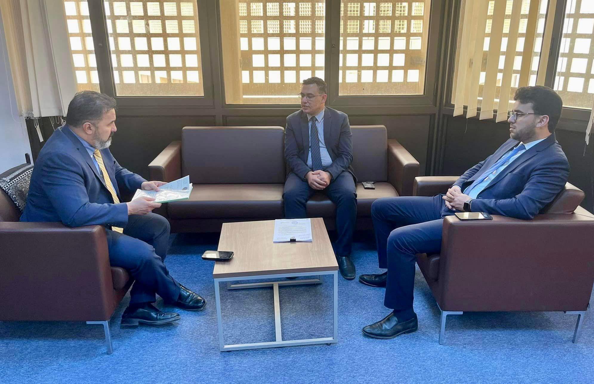 بحث رئيس مجلس إدارة الشركة العالمية للملاحة ” نضال بابا ” مع رئيس لجنة إدارة المصرف الليبي الخارجي “محمد الضراط ” سبل التعاون في مجالات الاستثمار المشترك.