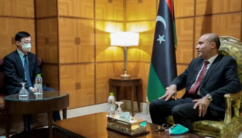 وتناول اللقاء آليات البدء في منح التأشيرة الصينية للمواطنين الليبيين ، والمساهمة في تزويد ليبيا بلقاح فيروس كورونا بالتنسيق مع حكومة الوحدة الوطنية.