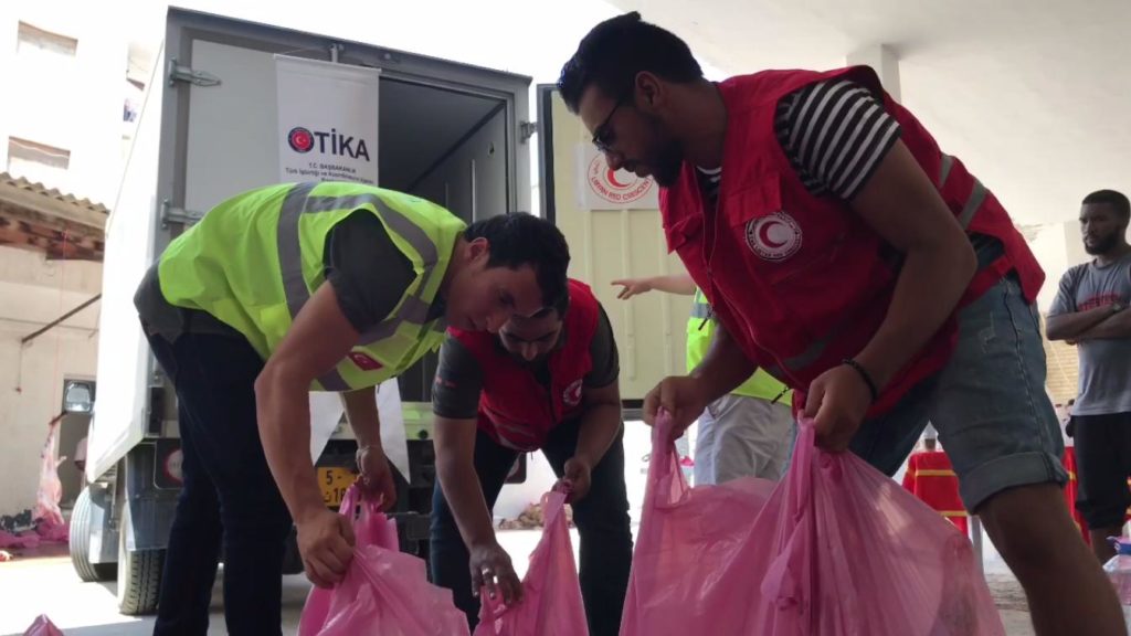 الهلال الأحمر الليبي يوزع مواد إغاثة على نازحو مرزق في طبرق