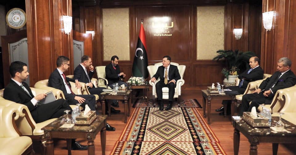 استقبل رئيس المجلس الرئاسي لحكومة الوفاق الوطني السيد فائز السراج الأسبوع الماضي بمقر المجلس بالعاصمة طرابلس وفدا من الخارجية الألمانية ، يضم كلا من مدير شؤون الشرق الأوسط وشمال أفريقيا السيد كريستيان بوك، والسفير الألماني لدى ليبيا أوليفر أوفتشا، ونائبه السيد ديفيد غوديش، وحضر اللقاء سفير ليبيا لدى الاتحاد الأوروبي السيد حافظ قدور، ومدير الإدارة الأوروبية بالخارجية الليبية السيد حاجي دهان، وتناول اللقاء مستجدات الأوضاع في ليبيا.