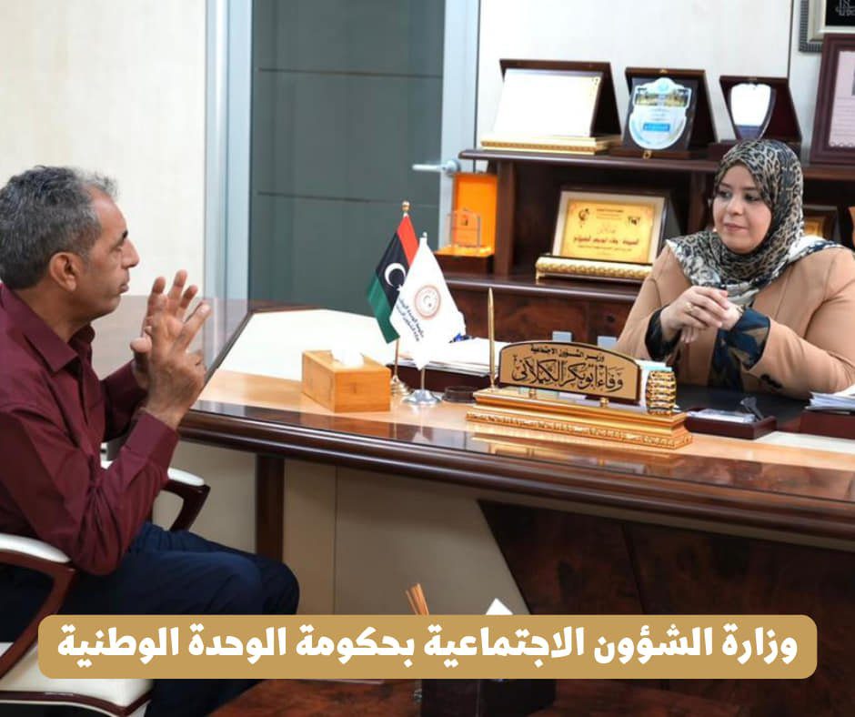 بحثت وزيرة الشؤون الاجتماعية وفاء الكيلاني ” مع عميد بلدية برقن ” الهمالي نصر الهمالي ” تفعيل فرع الوزارة بالبلدية وآلية توفير احتياجاته .