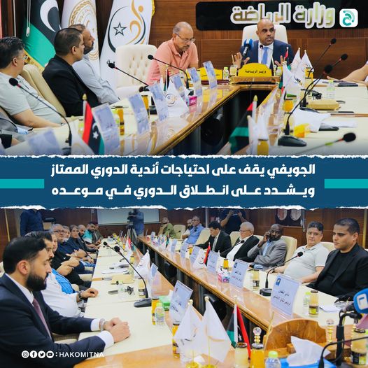 وشدد الجويفي على انطلاق الدوري في موعده المقرر في 27 من الشهر الجاري، داعيًا الأندية إلى تقديم مقترحات وخطط عمل فنية علمية واضحة المعالم ومحددة الأهداف، من أجل تقديم الدعم لها دون استثناء وضمان الاستفادة المثلى منه، ومواصلة مساهماتهم ومجهوداتهم المبذولة للنهوض بكرة القدم الليبية والارتقاء بها إلى أعلى المستويات.