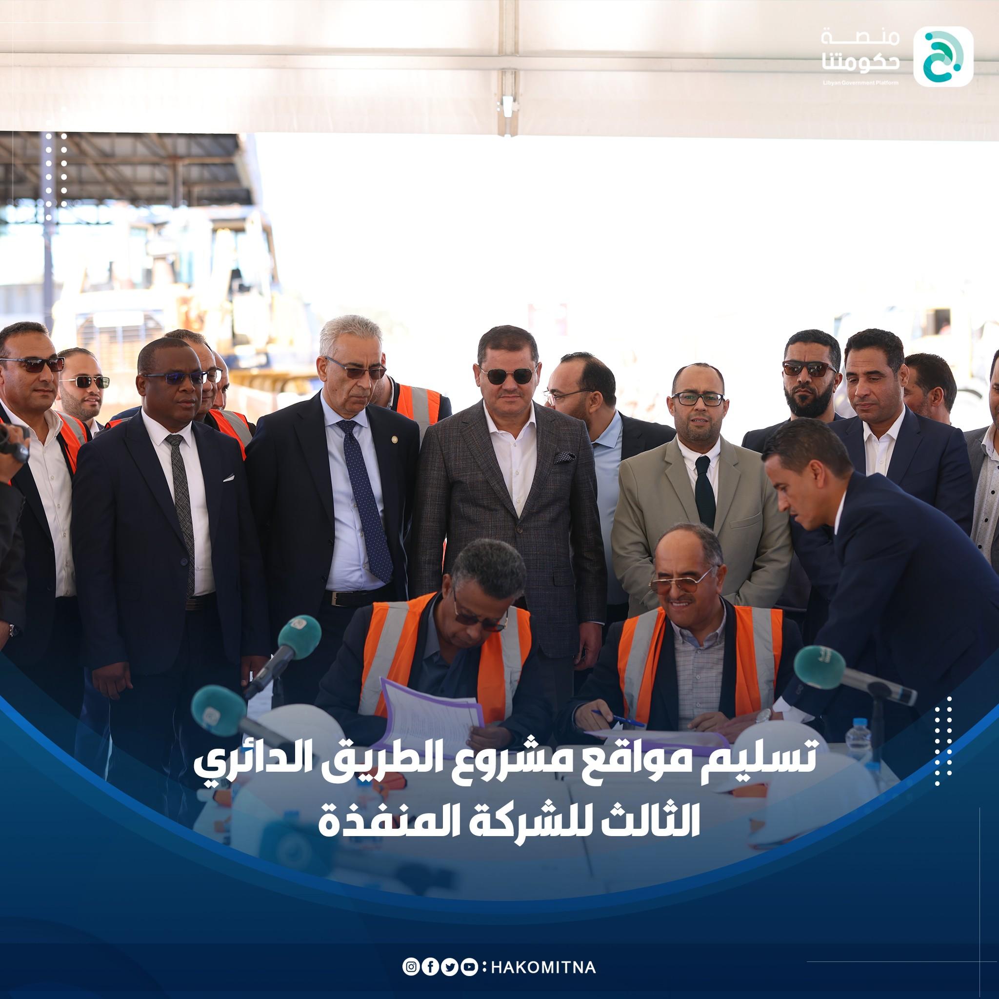 تم بحضور رئيس حكومة الوحدة الوطنية ( عبدالحميد الدبيبة  ) الأحد تسليم مشروع  الطريق_الدائري_الثالث لائتلاف الشركات المصرية لتنفيذه  عقب عمليات التهيئة  التي جرت خلال المدة الماضية .