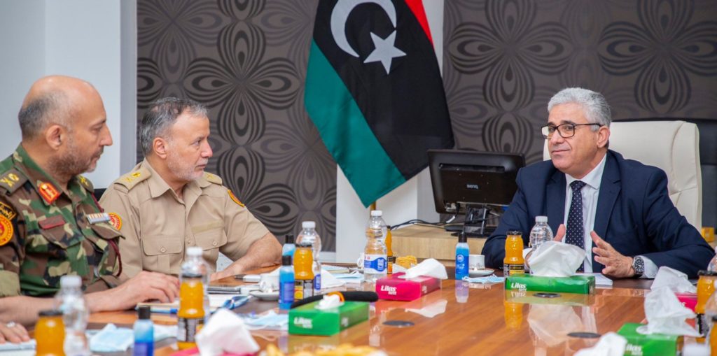 عقد وزير الداخلية المفوض السيد “فتحي باشاغا” صباح أمس الاثنين إجتماعاً ضم كلاً من أمر المنطقة العسكرية الغربية اللواء “أسامة الجويلي” وأمر المنطقة العسكرية طرابلس اللواء “عبدالباسط مروان” وأمر المنطقة العسكرية الوسطى اللواء “محمد الحداد”, ومساعد وكيل وزارة الداخلية للشؤون الأمنية عميد “محمد المداغي”, ورئيس جهاز المباحث الجنائية, ورئيس جهاز الردع لمكافحة الجريمة المنظمة والإرهاب, ومدير الإدارة العامة للعمليات الأمنية, ومدير الإدارة العامة للدعم المركزي, ورئيس قوة العمليات الخاصة.