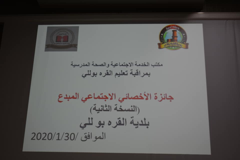 نظم مكتب الخدمة الاجتماعية بمراقبة تعليم القره بوللي احتفالية الاختيار الفائزين بالترتيب الأول والثاني بجائزة الأخصائي الاجتماعي المبدع على مستوى مراقبة تعليم القره بوللي في نسختها الثانية .
