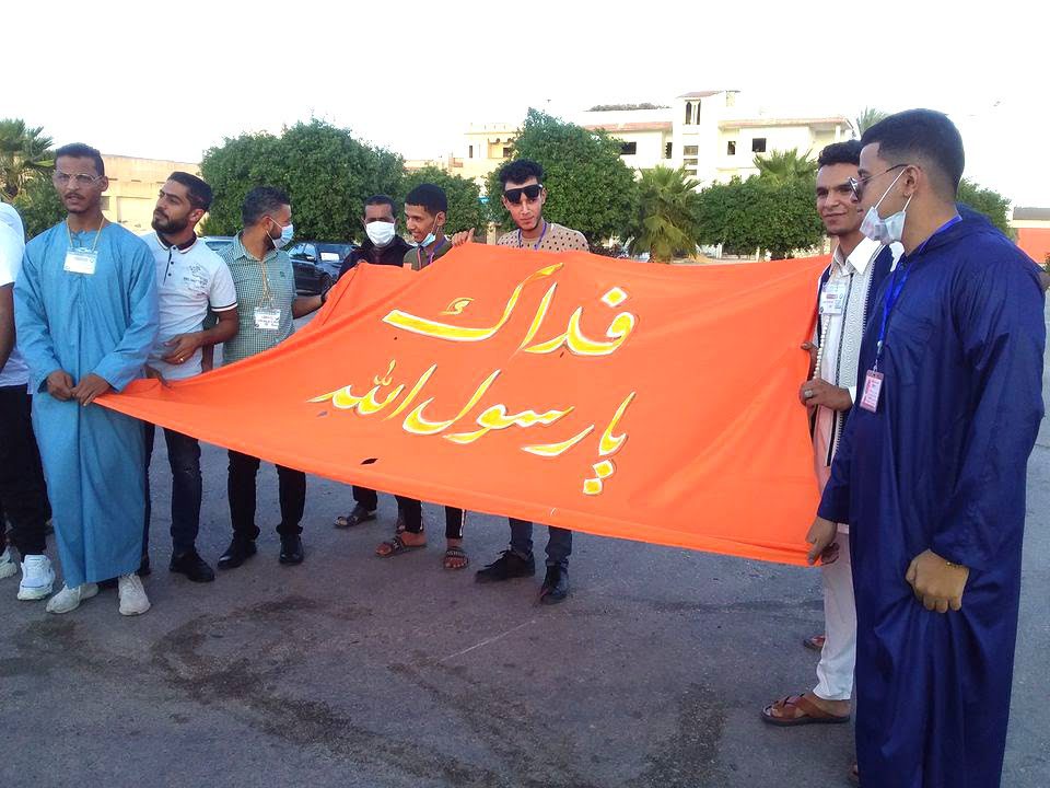 تحت شعار ( فداك يا رسول الله ) نظم بيت شباب صرمان مساء أمس الخميس بمشاركة نادي شباب الغربية وقفة تضامنية لنصرة النبي محمد صلى الله عليه وسلم مما يتعرض له من رسومات مسيئة من قبل الغرب وخاصة دولة فرنسا ورئيسها مؤخرا .