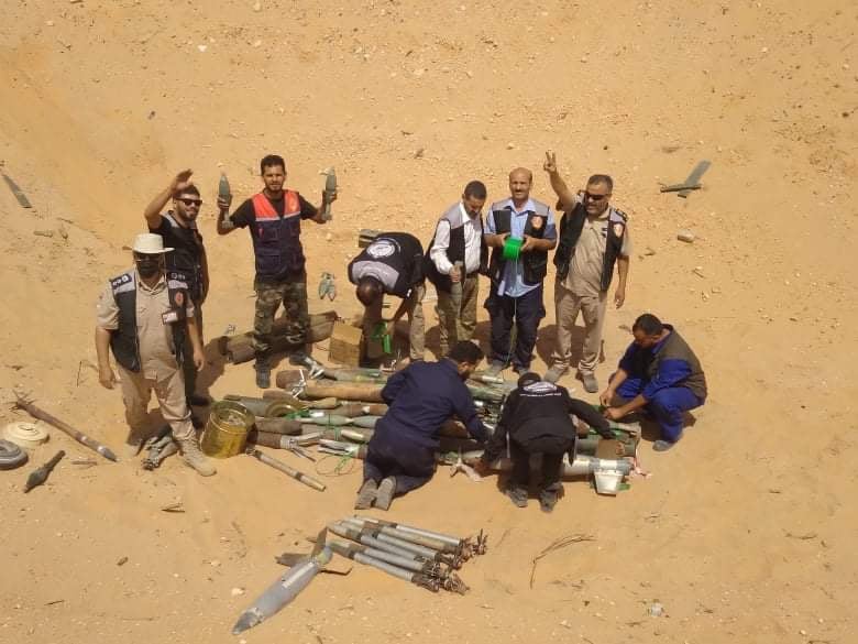 قــام فنيي ادارة المفرقعـات بهيـئة السـلامة الوطنية بتفجير كمية من مخلفات الحرب تمثلت في قذائف وصواريخ ورمانات يدوية تم انتشالها من جنوب طرابلس وذلك بموقع التفجير بمنطقة وادى الهيرة بالجبل الغربي .