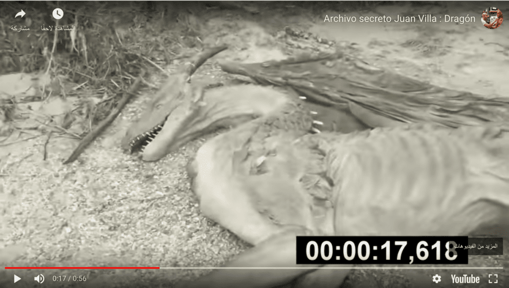 التنين الذي ظهر في هذا الفيديو هو في الحقيقة مجسم تنين صنع في إطار برنامج مخصص للظواهر الخارقة “Cuarto Milenio”الذي بثته قناة General Cuatro عام 2016.