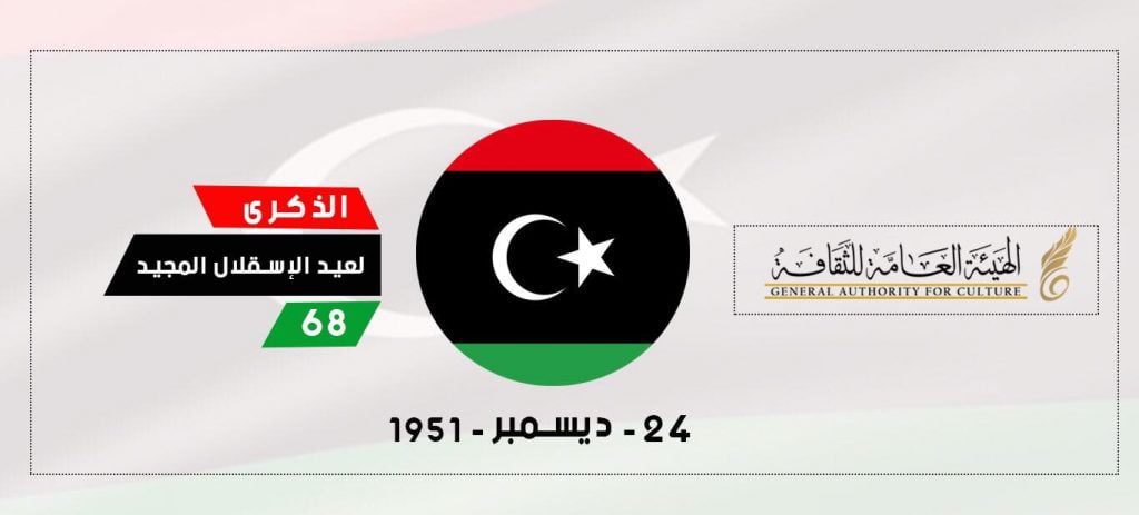 تتقدم الهيئة العامة للثقافة بأحر التهاني والتبريكات لكافة الشعب الليبي بحلول الذكرى الثامنة والستين لاستقلال ليبيا، الذي تحقق بتضحيات الآباء والأجداد، الذين بذلوا كل غالي ونفيس إلى أن نالت ليبيا حريتها واستقلالها،