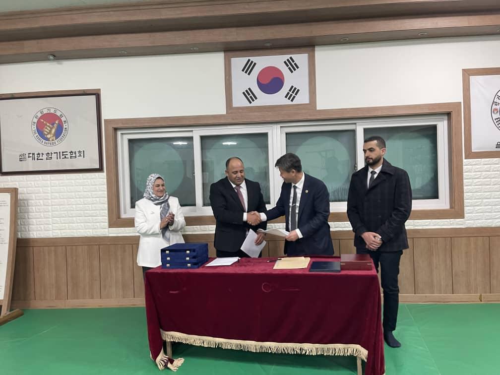شهدت جمهورية كوريا الجنوبية اليوم، توقيع مذكرة تفاهم للتعاون الاستراتيجي بين المكتب الإقليمي لجمعية التايكيون الكورية في دولة ليبيا والحكومة الكورية، في خطوة تهدف إلى تعزيز الشراكة الثنائية في المجالات الثقافية والرياضية.