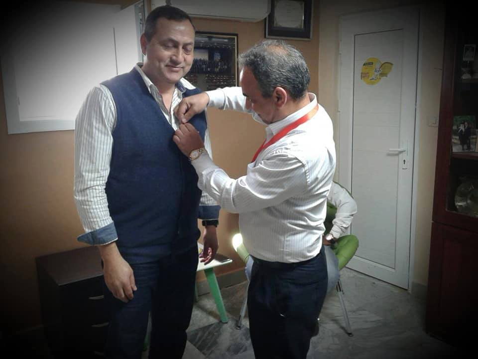 وقام بمنح الشارة للبروفسور” بن خيال”، المدير التنفيذي للجامعة، ورئيس جامعة” قصر الحكمة” ومسجل عام جامعة المعالي، ومدير الشؤون الإدارية وعدد من الطلبة.