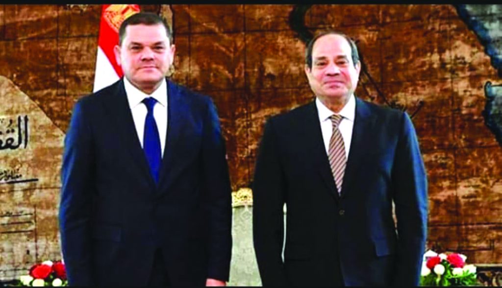 أكد الرئيس المصري عبد الفتاح السيسي خلال اتصال هاتفي مع رئيس حكومة الوحدة الوطنية عبد الحميد الدبيبه دعم مصر الكامل للحكومة الليبية والاستعداد لتقديم خبراتها في المجالات التي من شأنها تحقيق الاستقرار السياسي، فضلاً عن المشاركة في تنفيذ المشروعات التنموية في ليبيا والتي تمثل أولوية بالنسبة للشعب الليبي.