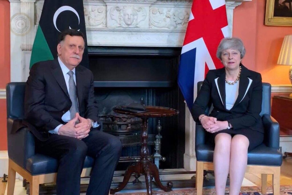 واستقبلت رئيسة وزراء بريطانيا السيدة تيريزا ماي صباح الخميس بمقر الحكومة “10 داوننج ستريت” رئيس المجلس الرئاسي السيد فائز السراج، وتناولت المحادثات التي حضرها عدد من مسؤولي الحكومة البريطانية والوفد المرافق للسيد الرئيس، الأزمة الليبية وتداعيات الاعتداء الذي تتعرض له العاصمة طرابلس وضواحيها.