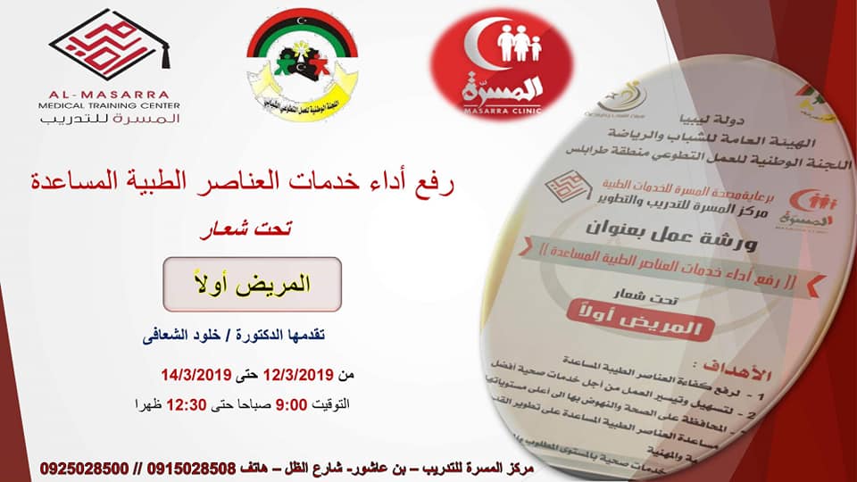 التي نظمتها اللجنة الوطنية للعمل التطوعي منطقة طرابلس ، واحتضنها مركز المسرة للتدريب ، وبرعاية مصحة المسرة .